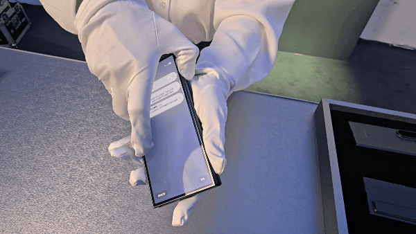G字型结构带来了另一点差异,也是现场印象较深的一点:折叠顺序是固定的。如果你逆向尝试折叠,手机会立即震动并弹出提示,避免操作错误对屏幕造成损伤,这一点使用起来非常安心。
