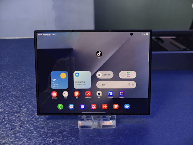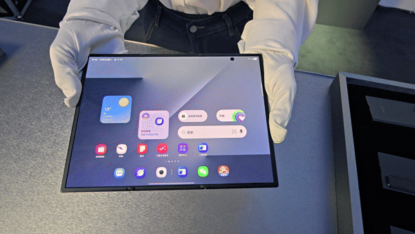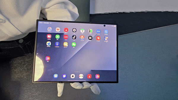 随之映入眼帘的就是一块10英寸Dynamic AMOLED 2X大屏幕,从手机瞬间转换为平板的视觉冲击还是很强的,实际可视面积相当于3台6.5英寸直板机并排。