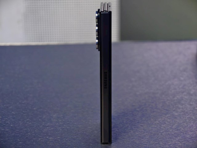 三星在材质上也是不吝成本,铰链盖采用钛金属,磨砂表面抗指纹;中框是增强型装甲铝,现场用钥匙轻划都看不到痕迹;背板则为陶瓷玻纤,官方称抗开裂能力比玻璃提升 300%,按压也没有形变。